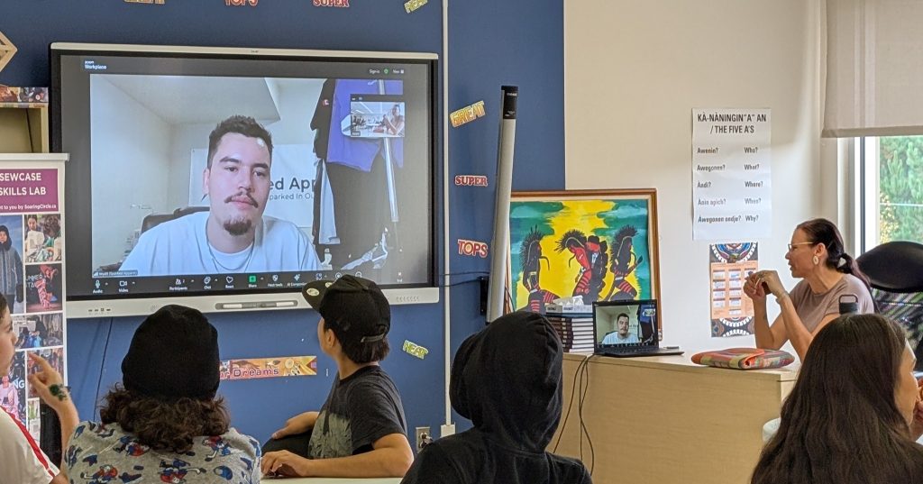 From visiting artists to industry professionals, Sewcase classrooms welcomed several special guests this year. One standout moment was a workshop with Waytt Miller of Sparked Apparel, who shared his fashion journey with students in Kitigan Zibi β€” a powerful reminder of how mentorship fuels possibility.